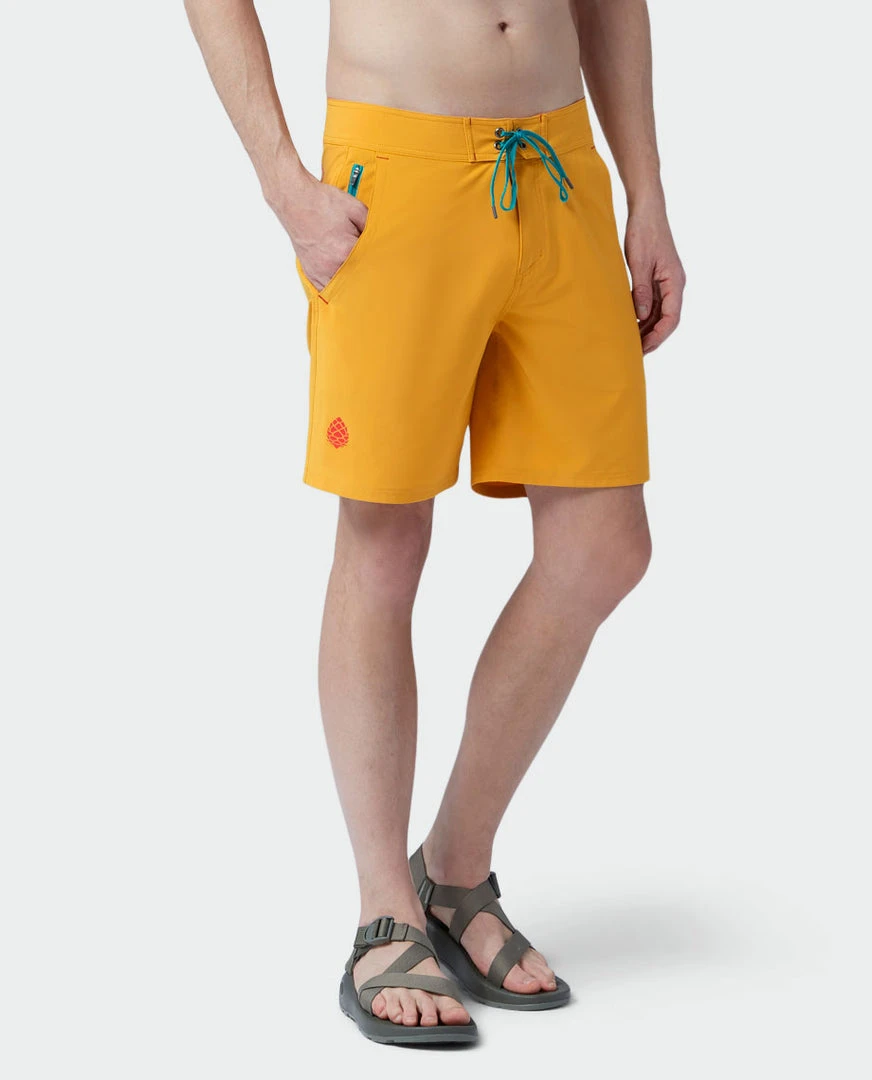 Styled for warm-weather watersports, this quick-drying, abrasion-resistant board short features ample stretch and UPF 50+ sun protection.