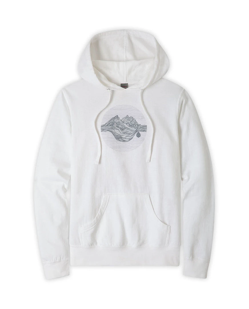 Cozy interior fleece and high-quality stitching show off a creative line design that evokes the ebb and flow of mountain life on this comfortable hooded sweatshirt.