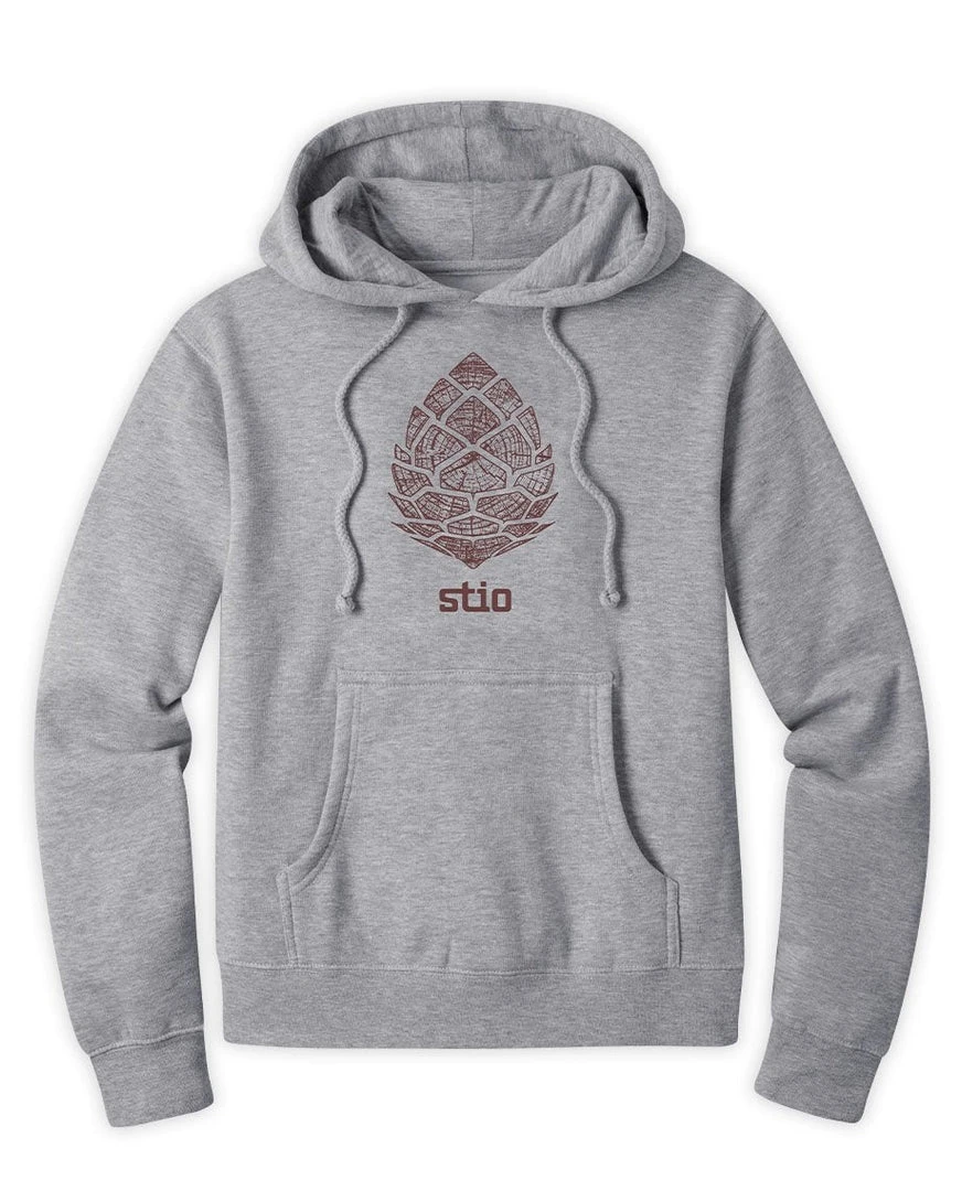 Our whitebark pinecone logo featuring a tree cross-cut print on a comfortable cotton-poly blend hoodie.